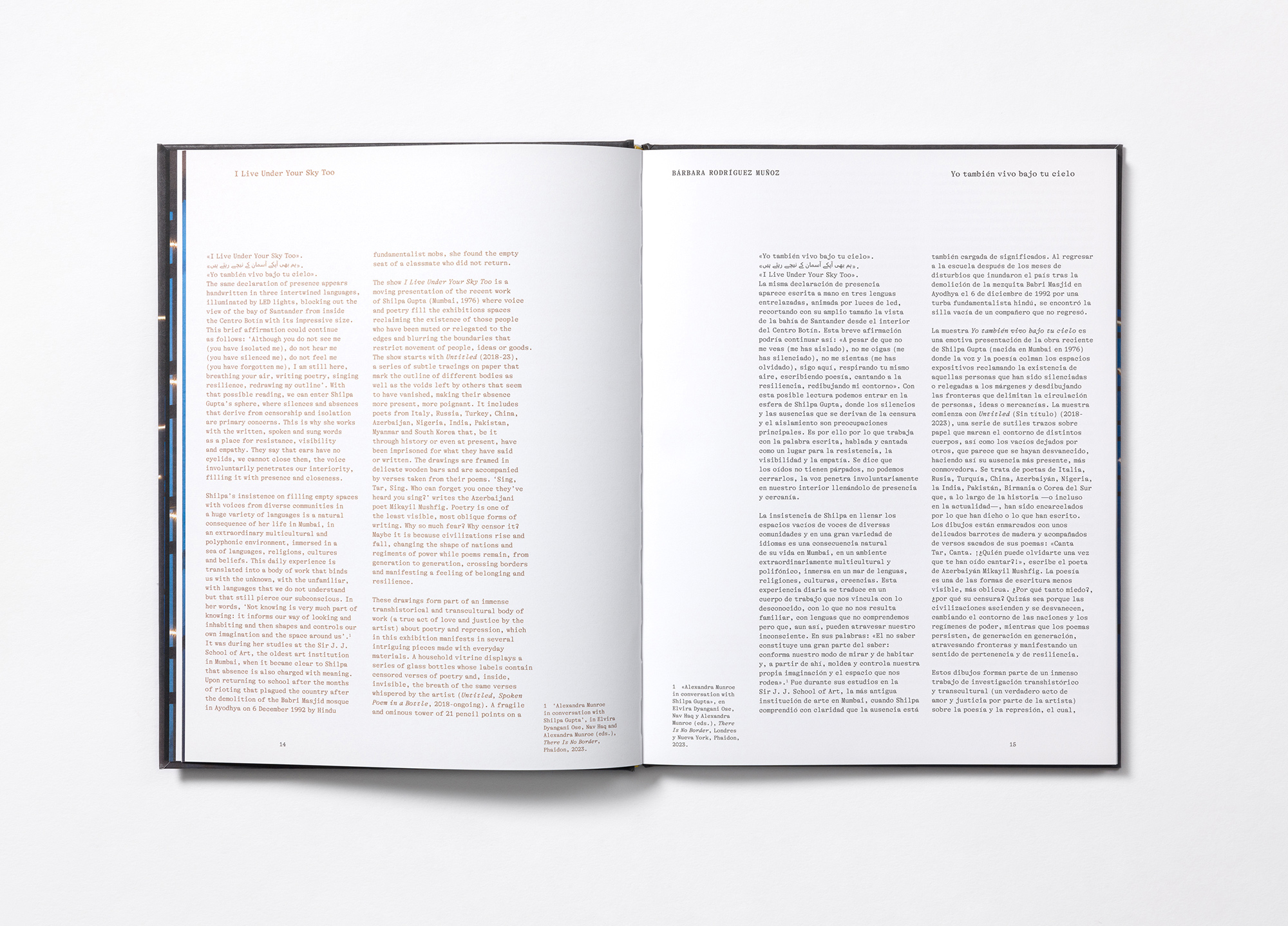 Curated by Bárbara Rodríguez Muñoz, Director of Exhibitions and of the Collection of the Centro Botín, the exhibition is accompanied by a catalogue that features texts by RodríguezMuñoz, art historian and curator Rattanamol Singh Johal, artist and poet María Salgado, and academic Pratap Bhanu Mehta.